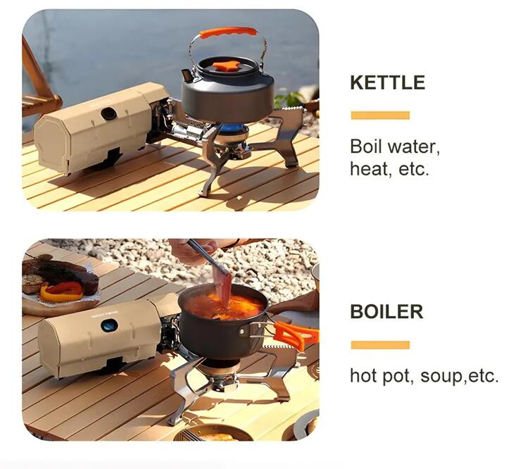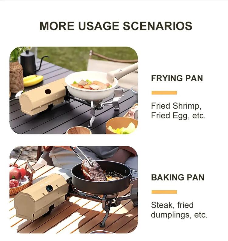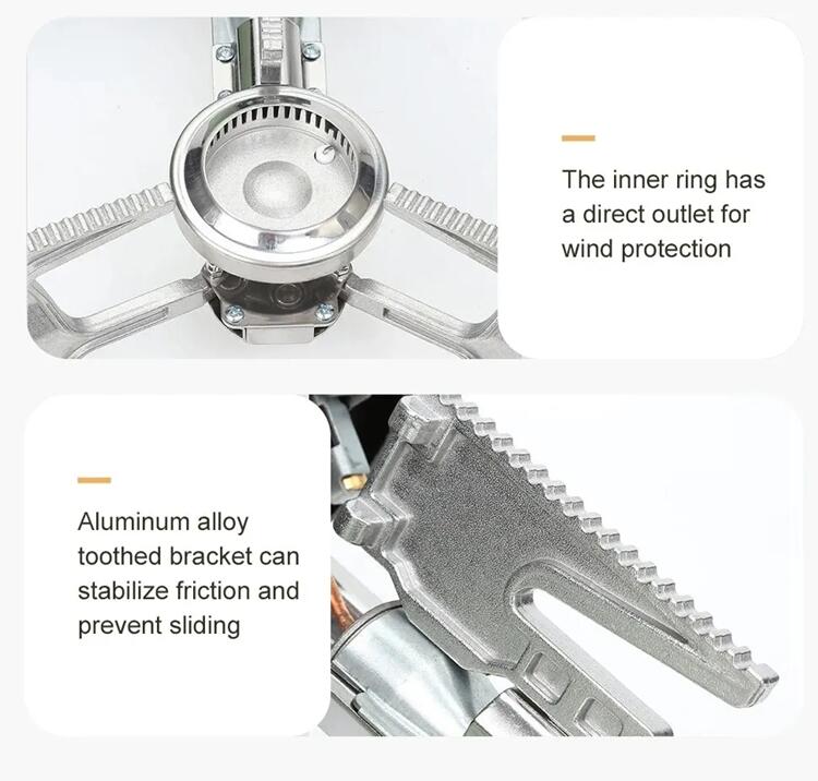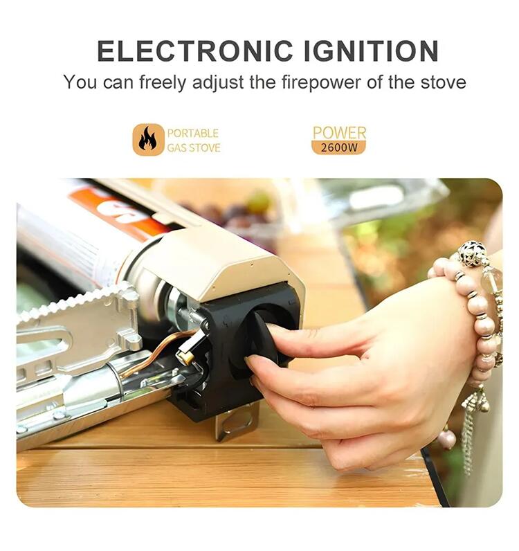 【AUTO IGNITION AND TEMPERATURE CONTROL】- This stove features an electronic ignition switch and durable rotary control knob. The fire power can be adjusted freely to meet your various cooking needs. And the stove is designed with a vertical fire outlet, which can prevent wind.